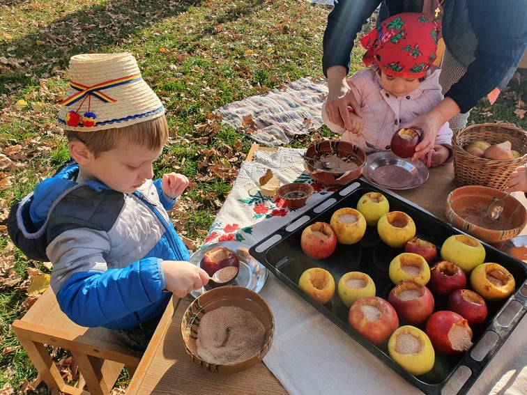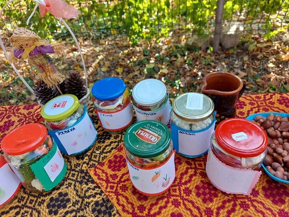 Cu multă migală și cu mult simț estetic au așezat în borcane fructele pentru a obține compotul de mere și legume specifice acestui anotimp, pentru murăturile de toamnă. Copiii susținuți și îndrumați de cadrele didactice au pregătit biscuiți cu tradiționalul magiun de prune, mere copate, au văzut cum se face mustul .N-au fost omise nici activitățile practice care din mâinile copiilor au devenit frumoase lucrări. Până și frunzele îngălbenite care au părăsit copacii au găsti loc între minunatele activităti gospodărești desfașurate de copiii.
